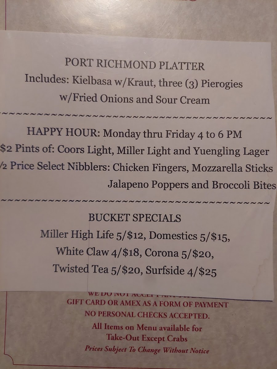 On the menu, you’ll find a variety of hearty bites like wings in multiple styles—including buffalo and fantastic fall-off-the-bone options—crispy pierogies, and comforting roast beef sandwiches. Bar pizzas, from pepperoni to house specialties, add a warm, shareable dimension, while steamed clams and crab dishes showcase a touch of coastal inspiration. For those looking to complement their meal, a range of beers such as Guinness, Blue Moon Belgian White, and Yuengling Lager fit the easygoing atmosphere.