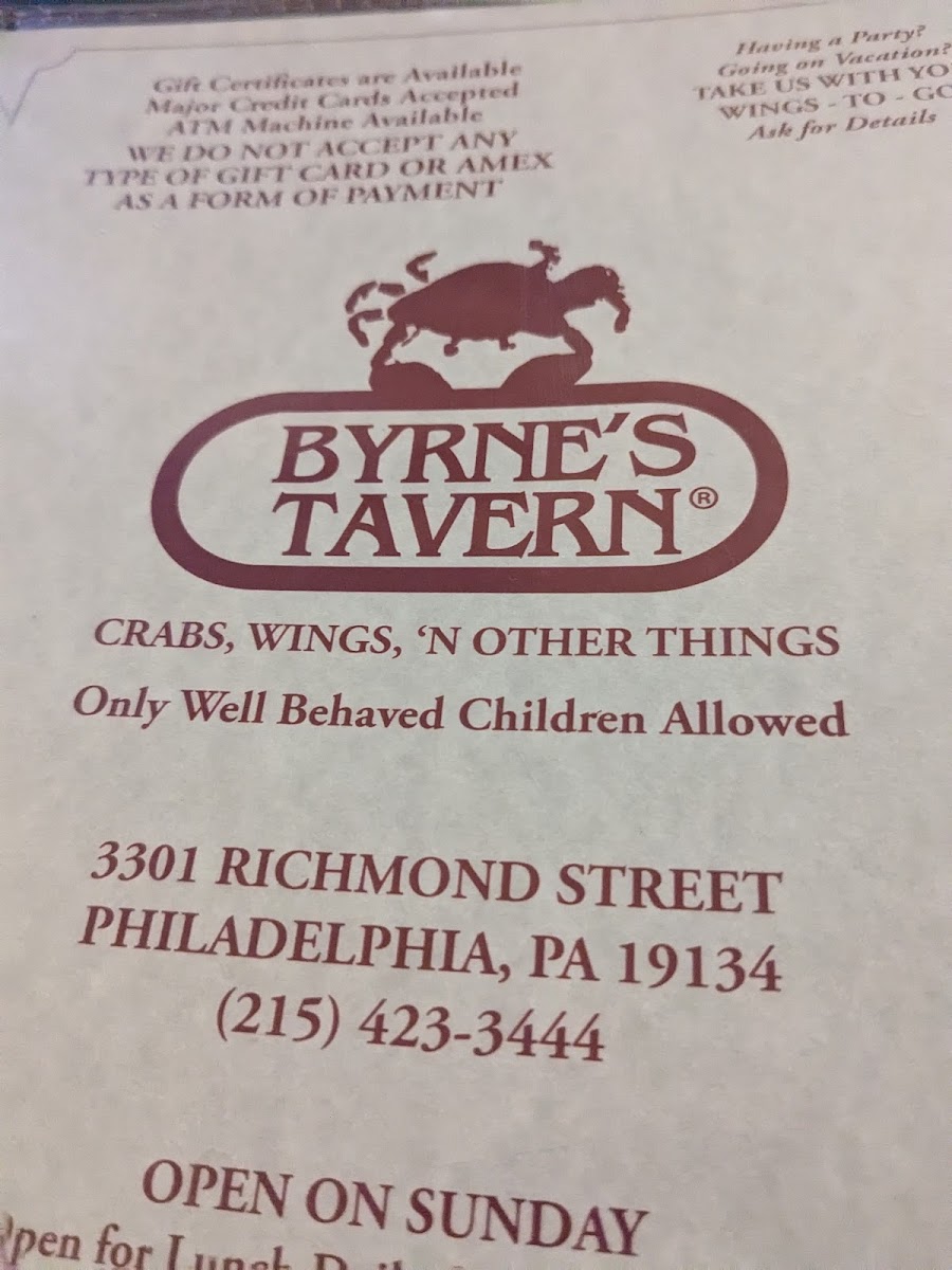 Byrne's Tavern Menu